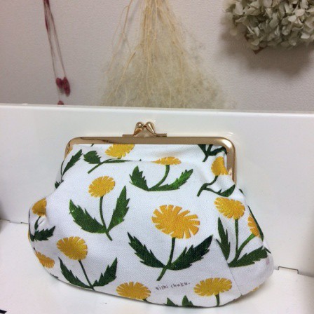 かわいらしいタンポポ柄に心を奪われました。がま口を開くと中も見やすく、たっぷり入るので私はメイクポーチとして使っています。