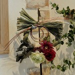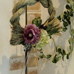 しめ縄の土台に自分で選んだ好きな造花をアレンジメントすることができます。