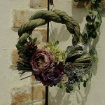 用いる花材によって全く異なる印象のしめ縄飾りができます。