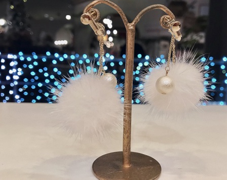 今年トレンドのファーアクセサリー、やはり白は王道で可愛いですよね◎
