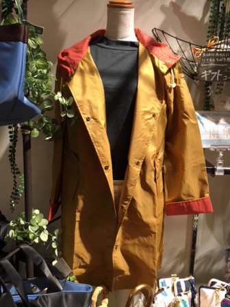 こちらはお洋服とコーディネートし展示しているレインコート。