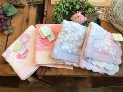 まずはこちら、ローラアシュレイのタオルハンカチです。¥500+税