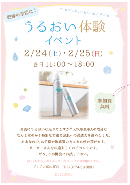 お肌に潤いを与えてくれる、キョウキオラの体験イベントを行いました。