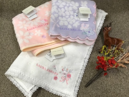 当店でも人気のローラアシュレイのタオルハンカチです。