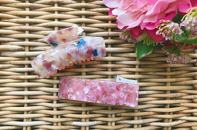 マーブル模様のヘアクリップ。