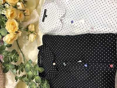 白黒カラーなのと小さなドットが甘くなりすぎないので、大人の方にも着てほしいですね。