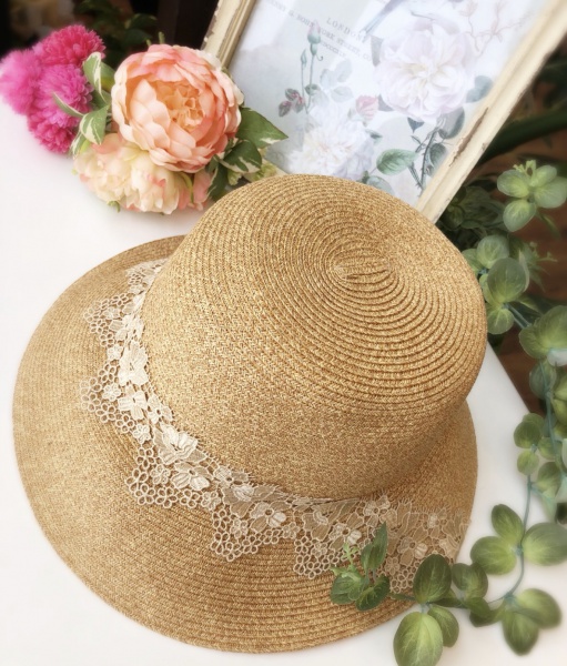 こちらはイノブンで毎年人気の麦わら帽子で、上品なレースがあしらわれており、さり気ない女性らしさがとても素敵です♪