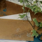 ブックカバーはイノブンの紙袋やお気に入りの紙袋、クラフト紙に好きなスタンプを押していただいて、お作り頂きました。