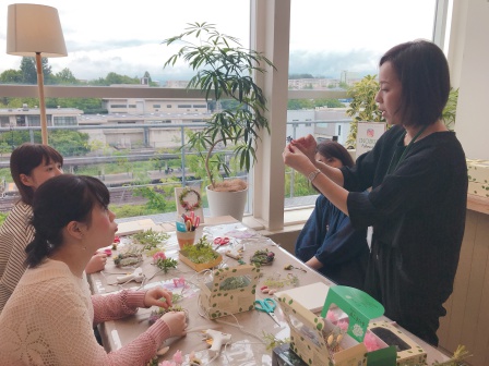 1人ではなかなか出来ない、フラワーアレンジメントを分かりやすく教えてもらいながら皆さま作品を作っておられました。