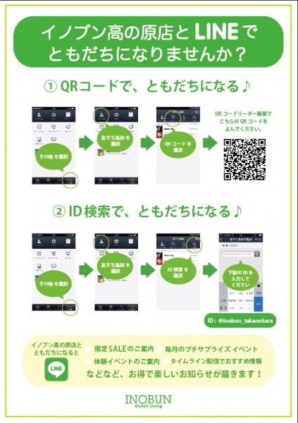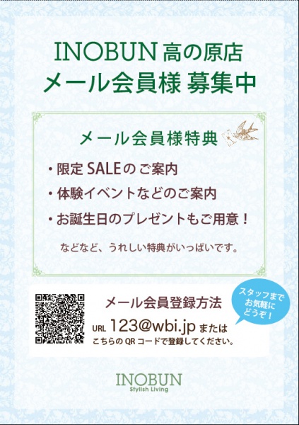 NOBUN高の原店では、メール会員様・LINEのおともだちを募集しております。