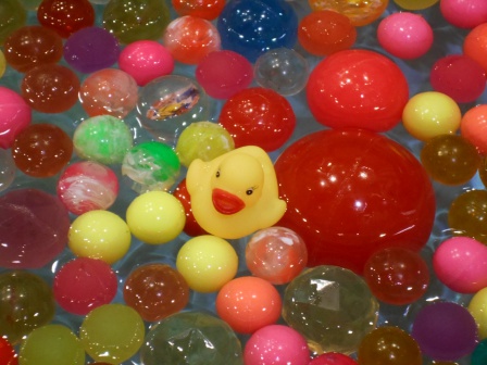 アヒルや大きいスーパーボールなどたくさん用意しており、みなさまに喜んでいて喜んで頂くことができ