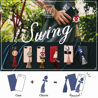 フック付きiPhoneケースと別売りのチャームを組み合わせて楽しめるシリーズです。