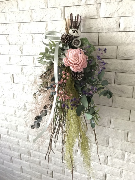 秋の新作プリザーブドフラワーをつかってスワッグをお作り頂きました。