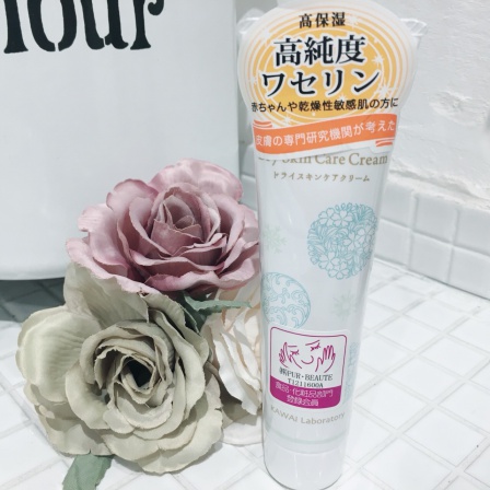 皮膚科と共同開発して作られた、純度の高いワセリンクリームで、乾燥するお肌を優しくつつみこみ、柔らかくしてくれます。