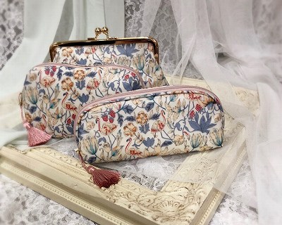 シックな花柄にフラミンゴが印象的なポーチのシリーズです。