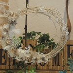 Herb Treeの坂東聖子さんを講師にお迎えして、思わず見とれてしまいそうな純白のクリスマスリースをお作りいただきました。