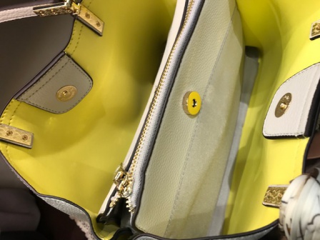 メインの収納口は安心のファスナーつき。付属のスカーフにこだわった人気シリーズです。内側の配色もとてもきれいです。