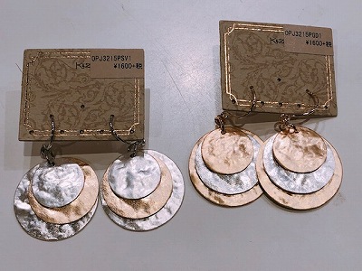ゴールドとシルバーがついになっていて、シンプルだけど存在感のある、アクセサリーです。