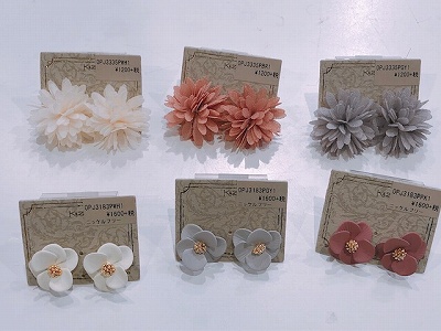お花のアクセサリーです。まだまだ寒い日は続きますが、色鮮やかなお花のアクセサリーで春を取り入れませんか。