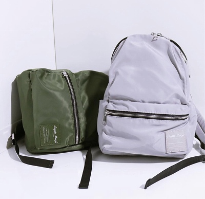 上質な微光沢の撥水生地にシルバー金具が大人カジュアルスタイルと相性抜群!
