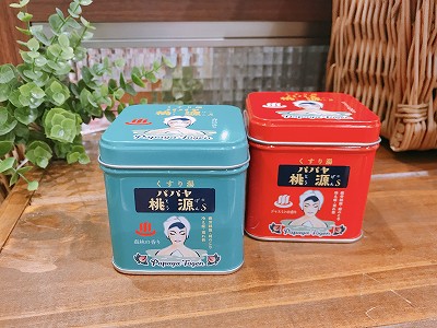 レトロな缶にはいった入浴剤をいれてゆっくりお湯に浸かると、1日の疲れが吹き飛びます。