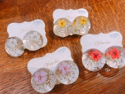 お花のアクセサリーは、毎年人気ですが、春らしい淡いお花が封入されたアクセサリーは、さりげなく着けられます!