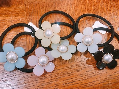 最後に、淡い色が可愛いお花のヘアゴムです。