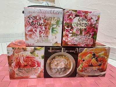 ムレスナティー4つを組み合わせ、サテンリボンでラッピングしています。1箱に11包の紅茶が入ってるムレスナティーなのでたくさん紅茶を楽しんでいただけます。