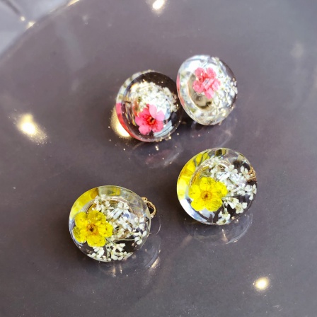 本物のお花を透明のドームに閉じ込めたかわいらしいイヤリングとピアスです(*^^*)