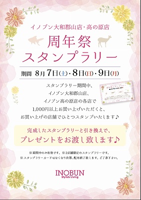 「高の原店・大和郡山店合同スタンプラリー」期間中、高の原店・大和郡山店両店で1000円以上お買い上げでそれぞれスタンプを押します。両店のスタンプが揃ったら、プレゼントをお渡しします♪