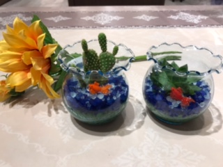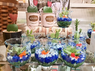 金魚鉢にグリーンと金魚がとても涼しそうです。
