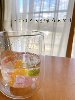 店頭でも紹介させて頂いているのですが、宝石寒天とサイダーで作る『こはく割り』という楽しみ方があるんです!私も実際に作ってみました↓