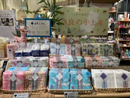 奈良の伝統産業薄織物”蚊帳生地”を改良し生まれたふきんは、優れた吸水性、速く乾く、素早い汚れ落ち、さらりとしたやさしい使用感のふきん。長期に渡り新鮮な白さを保つという商品の特性から「白雪ふきん」と名付けられています。奈良・東大寺の大仏さまの年に一度のお身拭いにも毎年献納されています。
