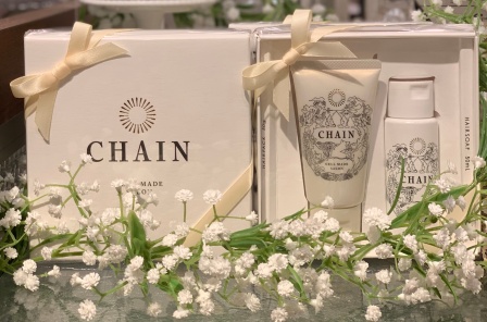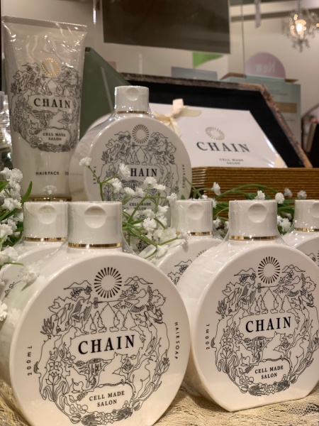 このチェインの最大の特徴、髪の毛と同じ成分のアミノ酸で作られているため頭皮にも優しく髪に栄養を与えながら洗いあげます。
