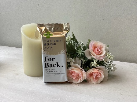 こちらは一度出来るとなかなか完治しにくい背中ニキビをこれ1つで毛穴づまりのオフ、殺菌消毒、保湿の3ステップが完了する薬用石鹸です。ノンコメドジェニック処方だから新たなニキビも出来にくくなります。