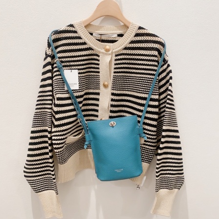 最後はこちら。サコッシュのようなコンパクトさですが、牛革の素材感がとても大人の女性にぴったりな雰囲気です。長さもしっかり調整出来るようになっているのもおすすめポイント。デイリーはもちろん、旅行先でなど少し両手を開けたいときにも使いやすいショルダータイプ。コンパクトな財布とスマホ、ハンカチなどしっかり入る大きさです。こちらも差し色になるような色味がお気に入りです。¥13200