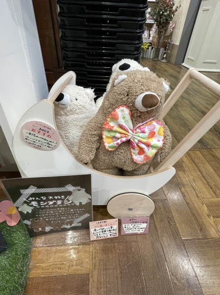 高の原店にも愛くるしく3体が乳母車に乗っています!