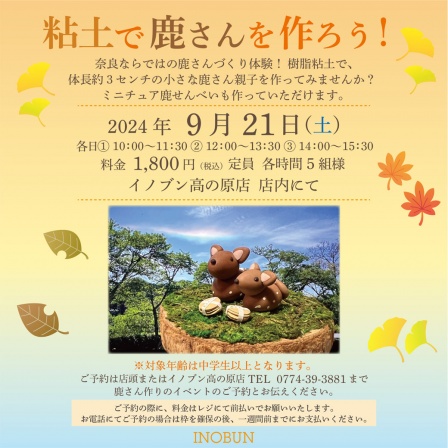 奈良ならではの鹿さんづくり体験!樹脂粘土で、体長約3センチの小さな鹿さん親子を作ってみませんか?ミニチュア鹿せんべいも作っていただけます。
