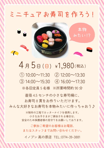 「ミニチュアお寿司を作ろう!」ワークショップ