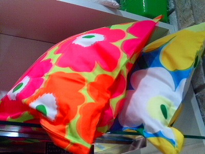 ポップな色のウニッコ柄!クッションカバーを変えるだけで一気に春らしくなります。