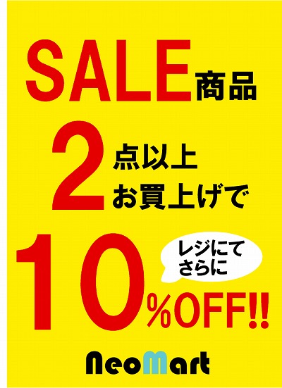 SALE商品2点以上お買上げでさらに10%OFF!!