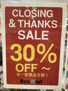 本日はSTORE CLOSING&THANKS SALEの知らせです。