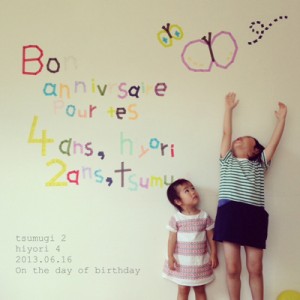 ムスメのWバースデーの壁面デコレーション