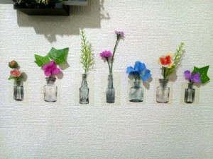 ・ビン柄のマスキングテープに造花を入れるアイデア。