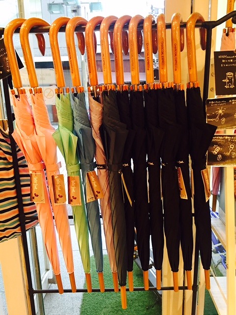 傘は大きく分けて、折り畳み式のものとおっきめの木手傘の2種類。