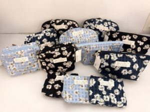 ブルーやブラックのギンガムチェックにマーガレット柄がさわやかなポーチです!