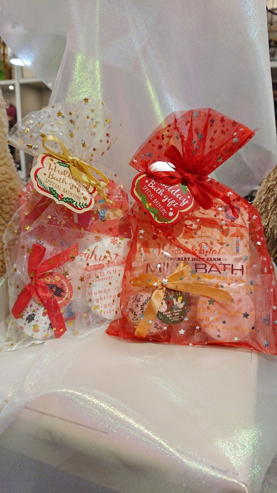 2つ目はこちら!いろいろな種類の入浴剤が入ったホリデーオーガンジーギフトです。