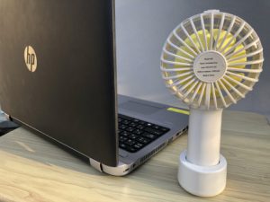こちらには卓上ホルダーがついていいるので仕事しながら手を煩わせずに涼むことができます。