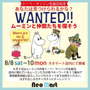 ネオマート店内のいたるところに隠れてしまったムーミンを探せイベントを開催致します!