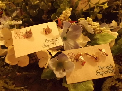 左の猫ちゃんピアスはブラフシューペリアの中でも一番人気のピアスです!